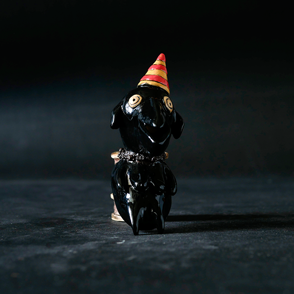 The birthday star dog is wearing a cute little red riding hood, ready to go to find friends for his birthday.