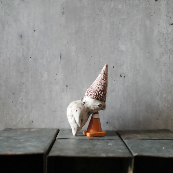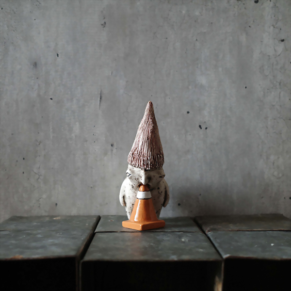 The red hat dwarf likes to rest on the cones.