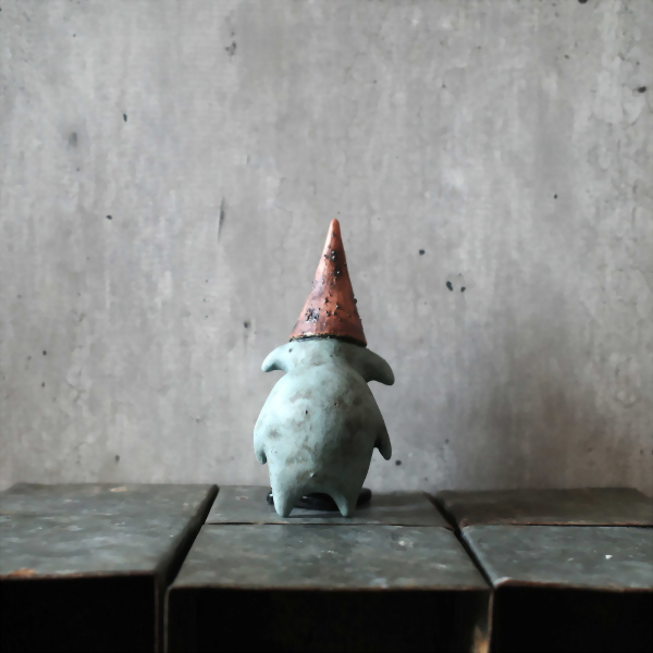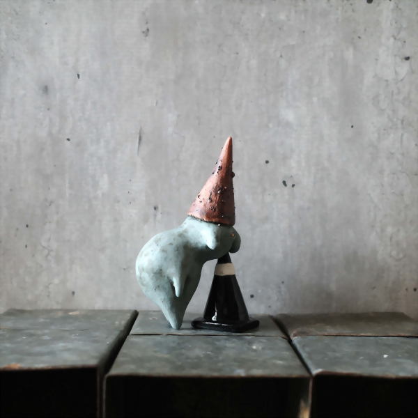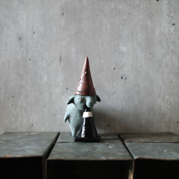 The red hat dwarf likes to rest on the cones.